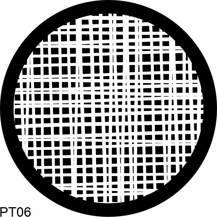 Monochromatyczna wkładka gobo z geometrycznym wzorem.
