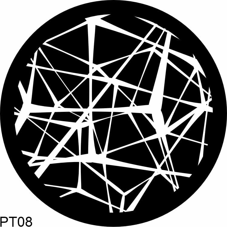 Monochromatyczna wkładka gobo z geometrycznym wzorem.
