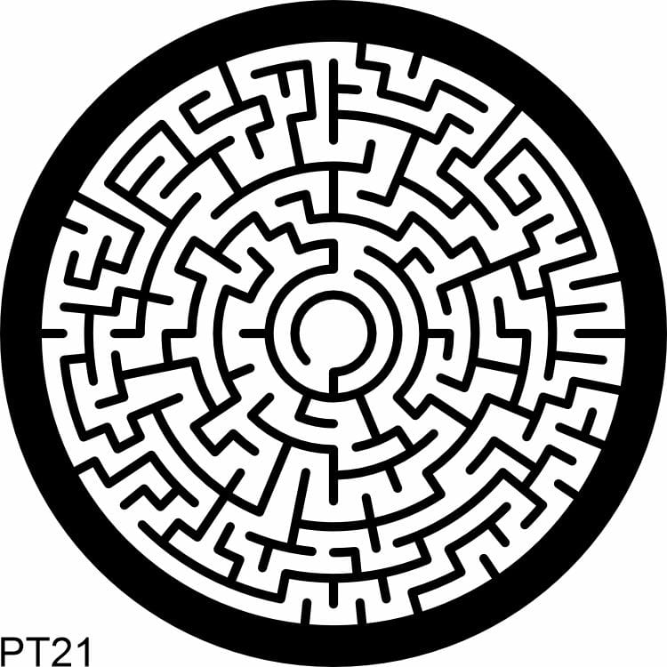 Monochromatyczna wkładka gobo z geometrycznym wzorem.