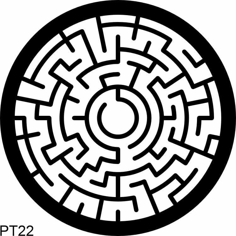Monochromatyczna wkładka gobo z geometrycznym wzorem.