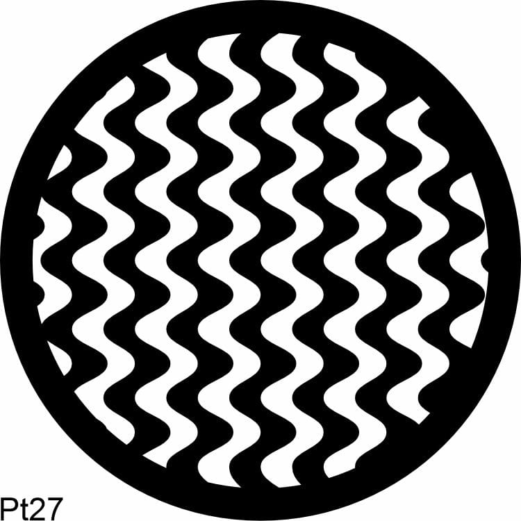 Monochromatyczna wkładka gobo z geometrycznym wzorem.