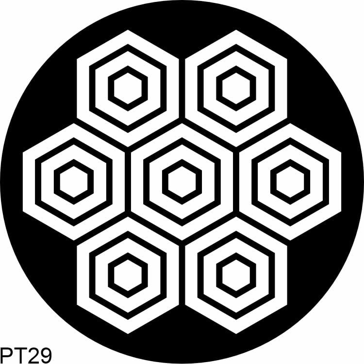 Monochromatyczna wkładka gobo z geometrycznym wzorem.