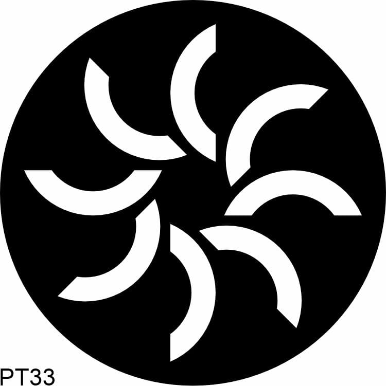 Monochromatyczna wkładka gobo z geometrycznym wzorem.