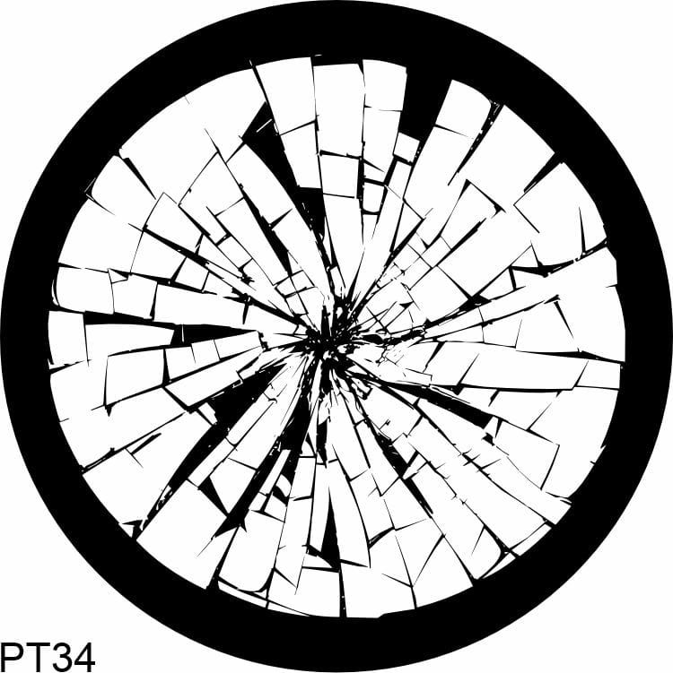 Monochromatyczna wkładka gobo z geometrycznym wzorem.