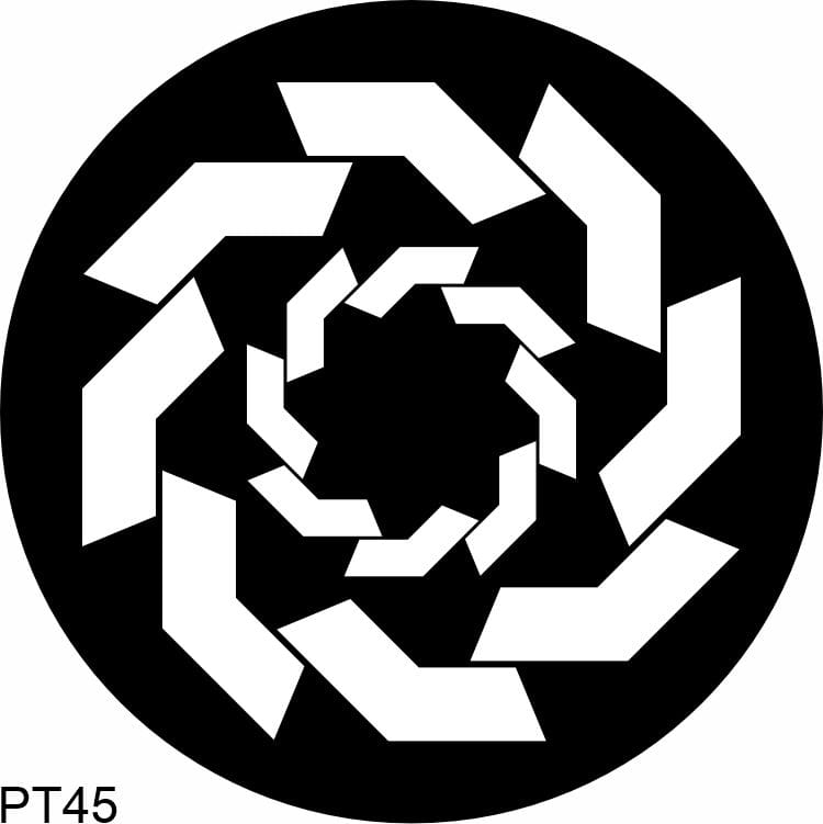 Monochromatyczna wkładka gobo z geometrycznym wzorem.