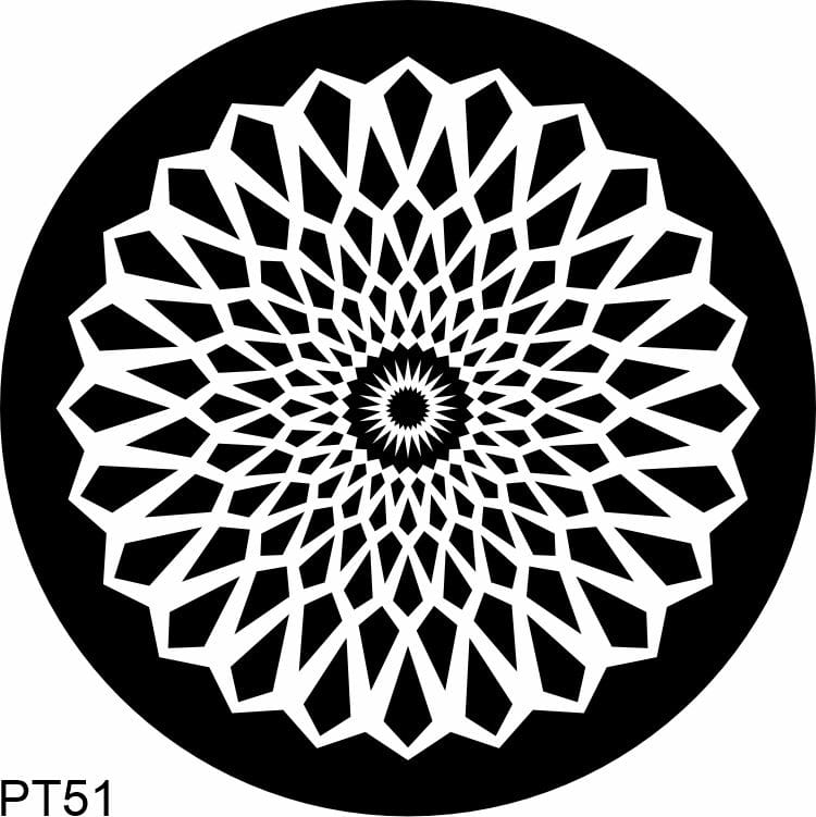 Monochromatyczna wkładka gobo z geometrycznym wzorem.