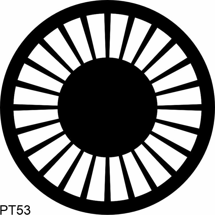 Monochromatyczna wkładka gobo z geometrycznym wzorem.