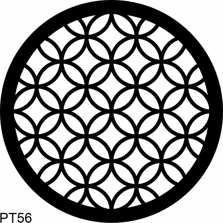 Monochromatyczna wkładka gobo z geometrycznym wzorem.
